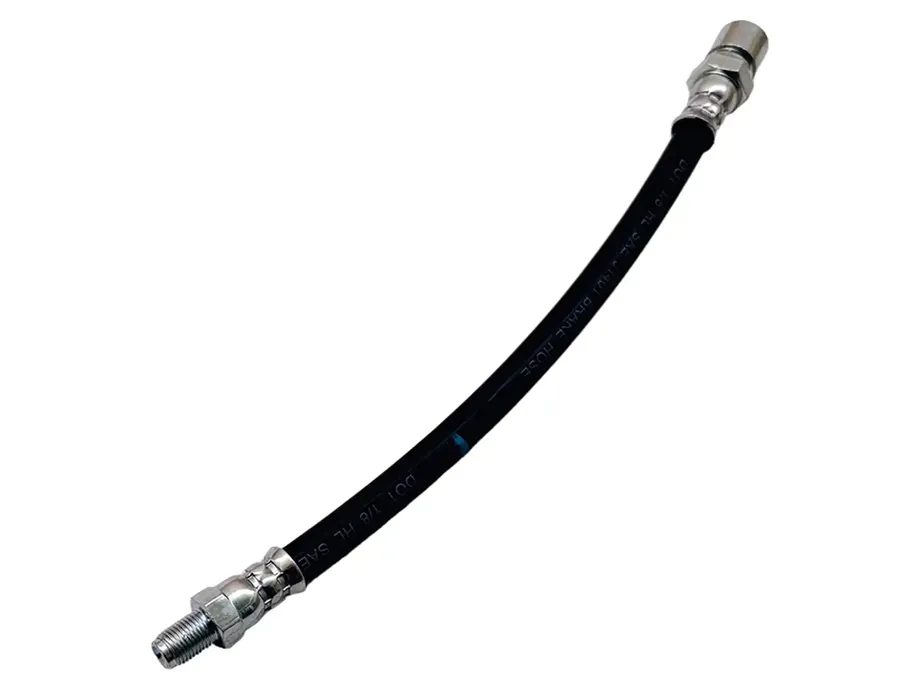 Gefertigt aus langlebigem Gummi mit Gewebeeinlagen, bietet dieser Bremsschlauch eine hohe Beständigkeit gegenüber Bremsflüssigkeit, hohen Temperaturen und mechanischer Beanspruchung. Dies sichert eine konstante und zuverlässige Bremsperformance.