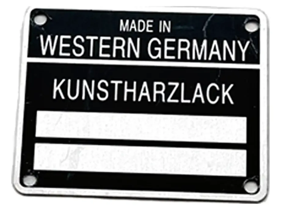 Authentische Dokumentation von Lackart und Farbcode: Dieser Aufkleber kennzeichnet die spezifische Lackart (Kunstharzlack) und ermöglicht die Zuordnung des originalen Farbcodes, der in dieser Ära von Porsche verwendet wurde. Dies ist entscheidend für Historiker, Gutachter oder für alle, die eine 100% korrekte Lackierung pflegen oder nachvollziehen möchten.