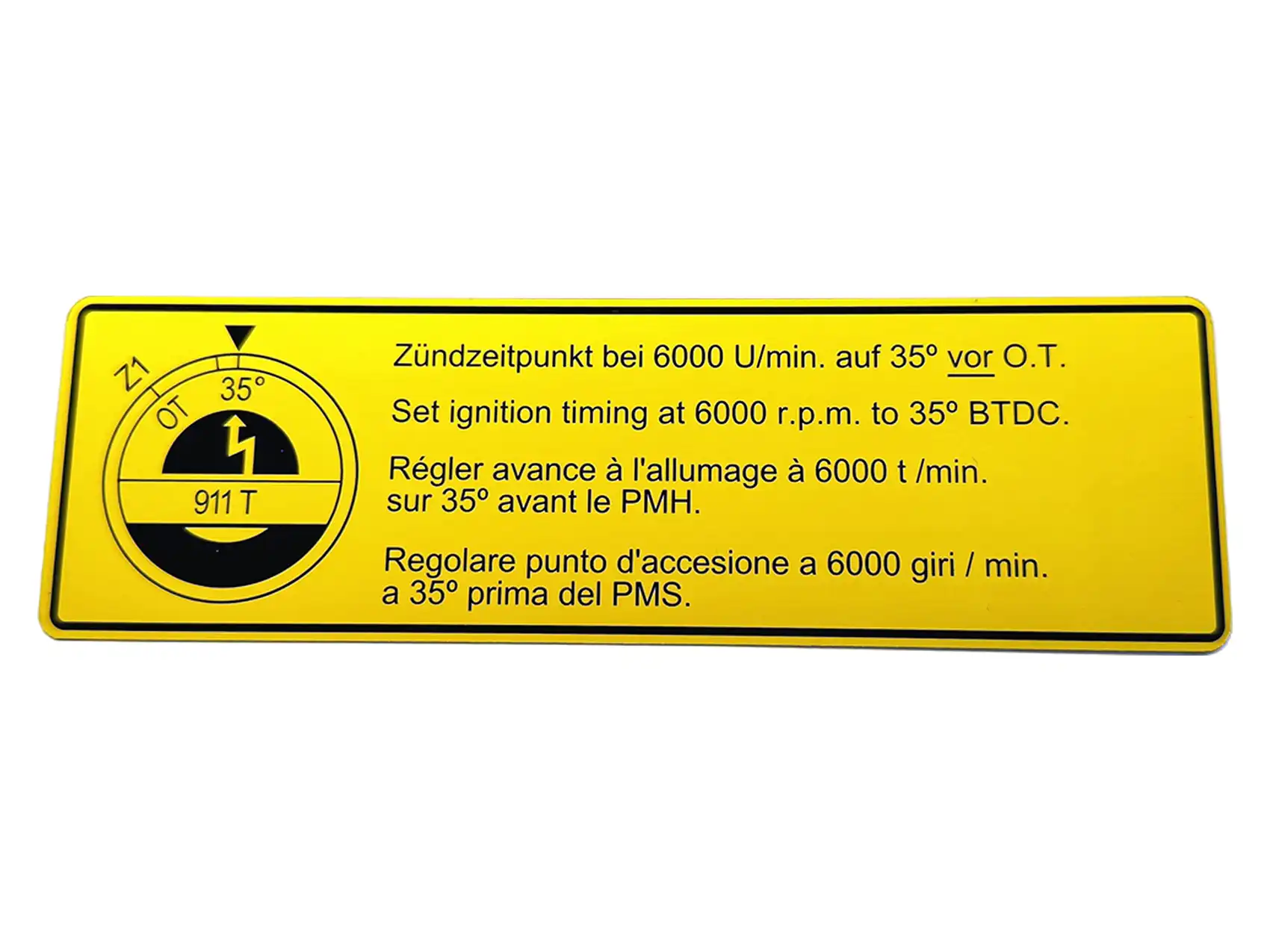 Authentischer Zündzeitpunkt-Aufkleber für Porsche 911 T (1969-1971) – Teilnummer 901 006 509 00 – Präzise Werksdaten für Ihren tourentauglichen Klassiker!